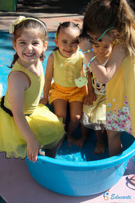 O Sol foi o astro preferido pelas crianças da nossa turma. Nesse dia, elas vivenciaram diversas brincadeiras e experiências relacionadas a um dia de Sol. As crianças vestiram amarelo e exploraram acessórios, objetos e diferentes texturas. O lanche também foi servido na cor amarela. Para completar, tivemos um momento especial de musicalização com a canção “Amigo Sol”.